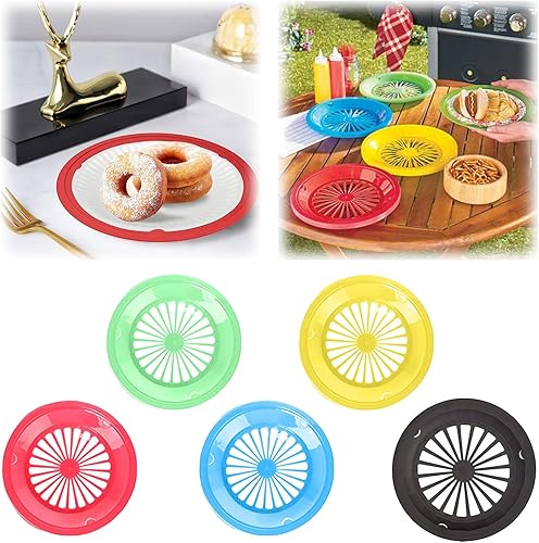 Lot de 15 supports d'assiettes en carton de 25,4 cm en plastique avec rainures à clipser, 5 couleurs de supports robustes avec verrouillage sécurisé, faciles à nettoyer et à ranger pour pique-nique