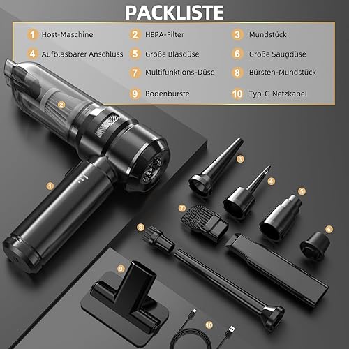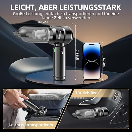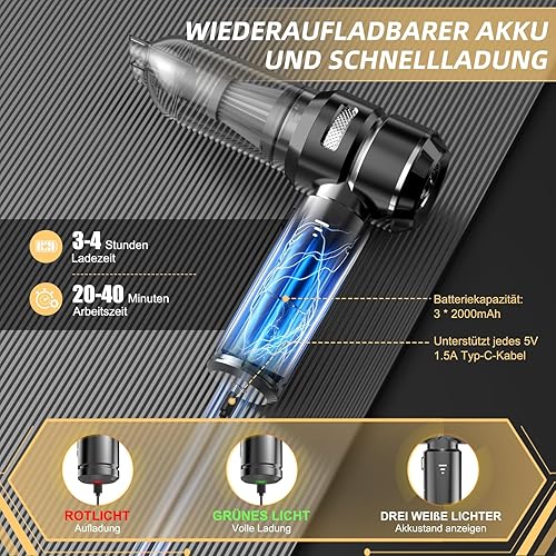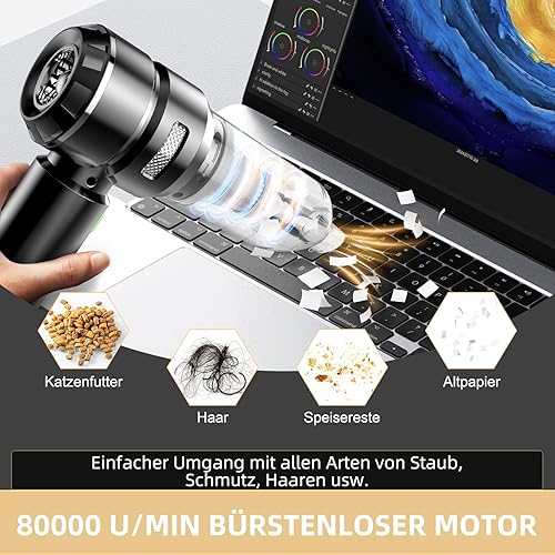 NVKHG Aspirateur à main, 22000Pa Aspirateur à main sans fil, 3 vitesses 8000 tr/min électrique avec moteur sans brosse, mini aspirateur, aspirateur voiture sans fil pour bureau, maison, cuisine, poils