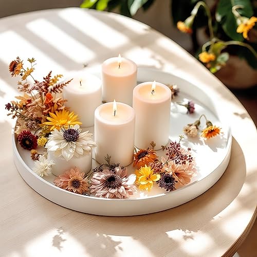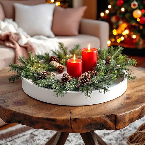 Plateau à bougie rond blanc brillant – 25 cm – Plateau décoratif brillant avec bord – Plateau de serveur Assiette décorative réutilisable pour décorations cadeaux de Noël