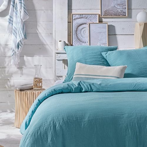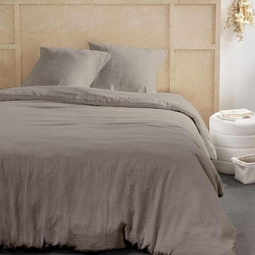 TODAY Parure de lit 2 Personnes 240x220cm Gaze de Coton Unie Dune, Beige