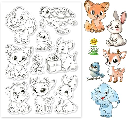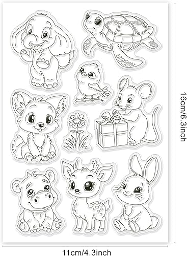 GLOBLELAND Tampons Transparents en Silicone avec Motifs D'Animaux de Dessin Animé Lapin Éléphant Tortue Oiseau Cerf Fleur Cadeau pour Bricolage Scrapbooking Fabrication de Cartes Album Photo Journal