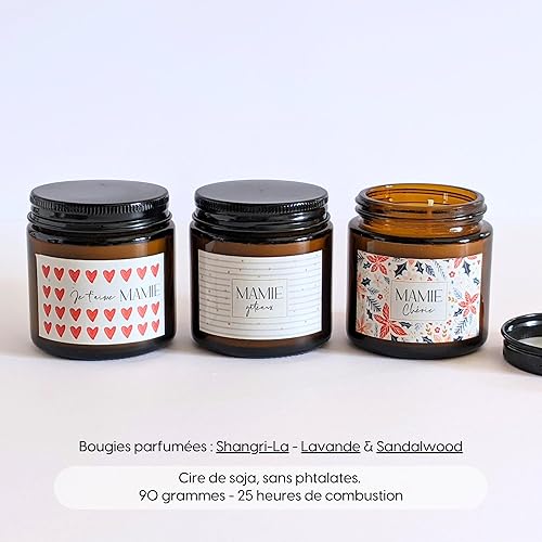 Coffret 3 bougies parfumées Mamie Chérie - Mamie Gateaux - Je t'aime Mamie | Cadeau fête des mamies, Cadeau fête des Grands-mères, Anniversaire Mamie, Annonce Grossesse Mamie