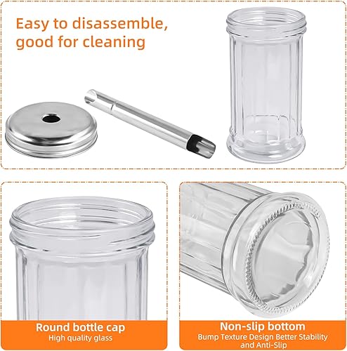 EclipseGuard Distributeur de sucre 350 ml, sucrier en verre, couvercle avec bec verseur non tranchant, restaurant et bar à café Ustensiles de cuisine avec brosse de nettoyage