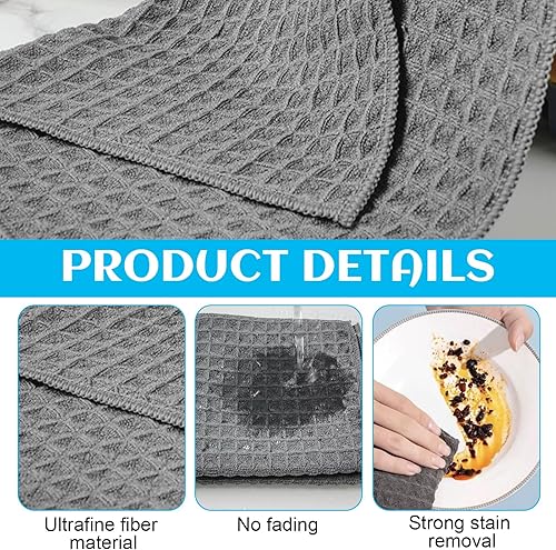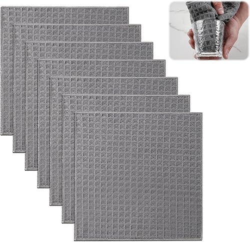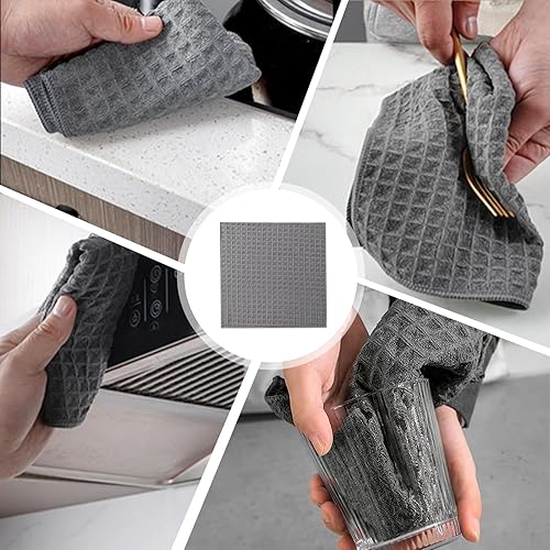 Yewseas 7 PCS Torchons de Cuisine, 25x25 cm, Noir, Serviettes de Cuisine Lavables, Absorbantes et Non Pelucheuses avec Tissu Alvéolé pour Vaisselle et Nettoyage Quotidien