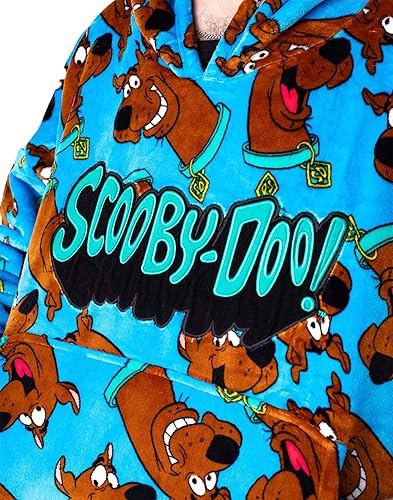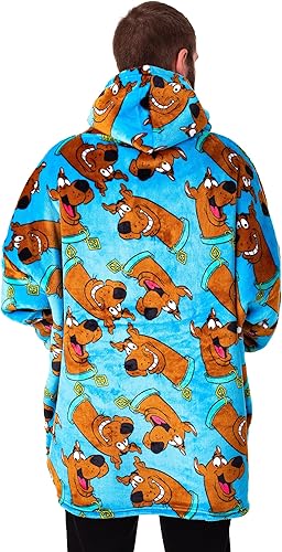 Scooby-Doo! Couverture portable à capuche pour homme | Pull à capuche pour adultes en bleu avec personnage imprimé graphique | Vêtements de détente doublés Sherpa taille unique