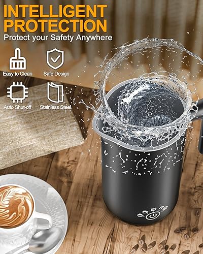 VIYSPNV 500 ML Mousseurs à Lait Électrique 5 en 1 Mousseur a Lait 600W Emulsionneurt Automatique Chauffe Fonctionnement Silencieux pour Café Latte Chocolat Chaud Cappuccino