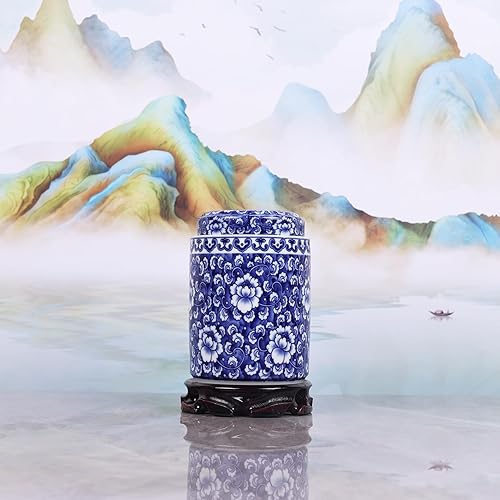 XINGYAN Vase à gingembre traditionnel chinois en porcelaine bleue et blanche avec couvercle, style chinois Ming (branches)