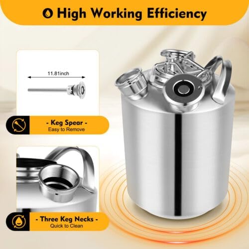 vinnyooc 10L Fûts et Tonneaux Tonneau à Bière en Acier Inoxydable Tonneau Vin Multifonctionnel Tonneau Bidon Alimentaire Avec Poignées pour Brassage à Domicile Hôtel Pub