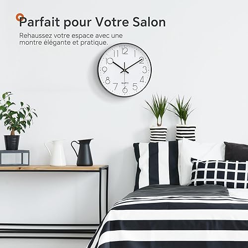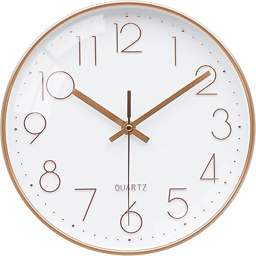 VIKMARI Design Moderne Horloge Murale, 25cm Ronde Silencieuse Or Rose Pendule Murale pour Salon Cuisine Salle de Bain Chambre à Coucher