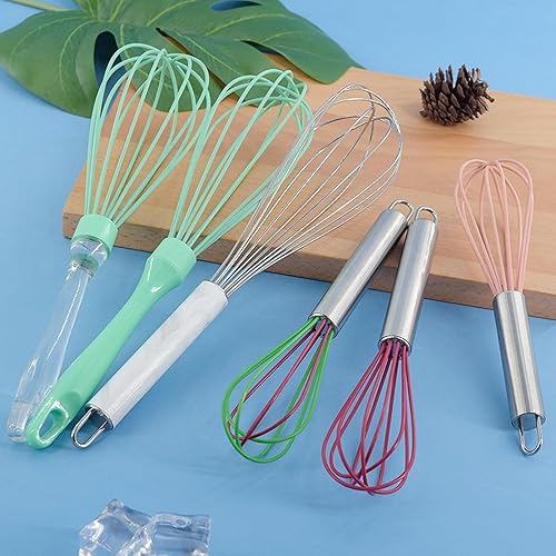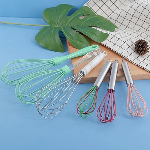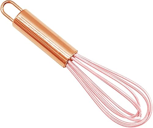 Mini fouet de cuisine en silicone de 15,2 cm avec poignée en acier inoxydable - Pour battre les œufs - Rose