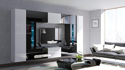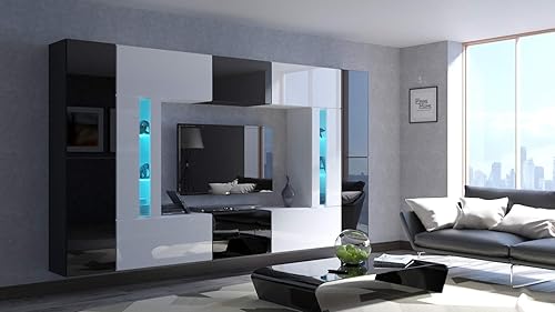 Furnitech Ensemble Meuble TV Mural Suspendu Salon – Meuble Salon Design Moderne avec colonnes- vitrines et rangements – Mobilier avec éclairage LED RVB - 16 Couleurs – (Julian AN67-19BW-HG1)