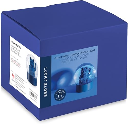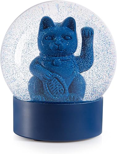 DONKEY Maneki Neko Lucky Globe Boule à Neige en Forme de Chat Porte-Bonheur Bleu Hauteur 11,5 cm