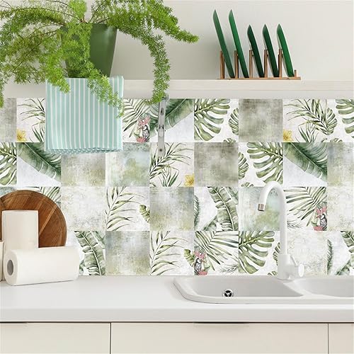 DOTBUY-SHOP Autocollant Carrelage pour Cuisine Salle de Bain,Motif Citron Feuille Verte 3D Autocollant Carreaux 24PCS Auto-Adhésif Stickers Carrelage Stickers Carreaux (Citron jaune,15x15cm)