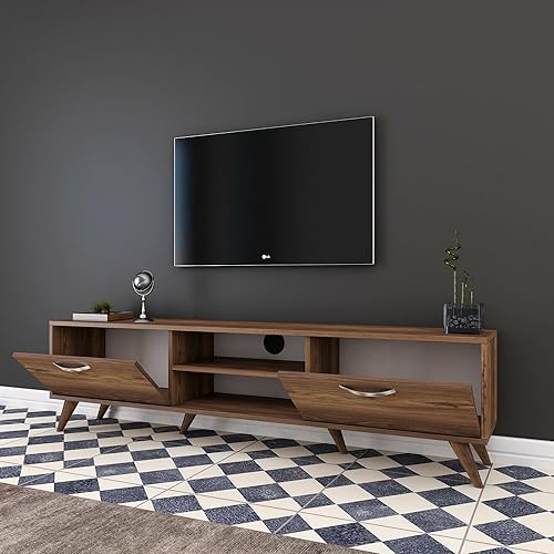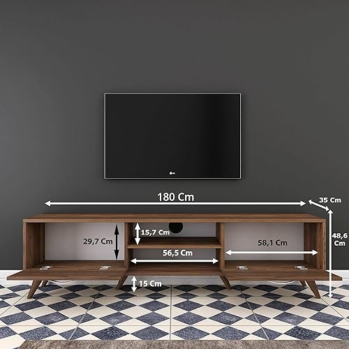 Dmora Meuble Porte Aldh, Buffet de Salon, Armoire Basse pour TV, Base Murale équipée, 180 x 35 h49 cm, Noyer