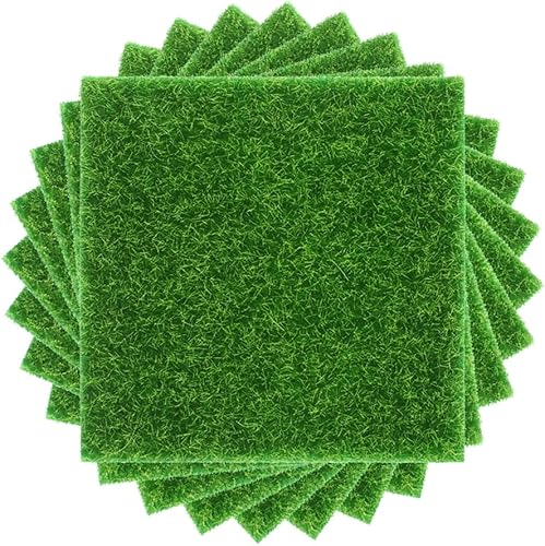 Chudian 8pcs Mini Herbe Artificiel Gazon 15 * 15 cm, Artificiel Synthétique Pelouse Miniature Tapis de Paillasson Faux Herbe pour Micro Paysage Décoration de Maison de Poupée Bouteille
