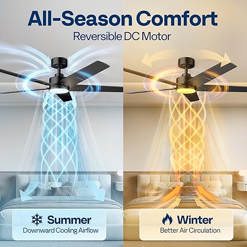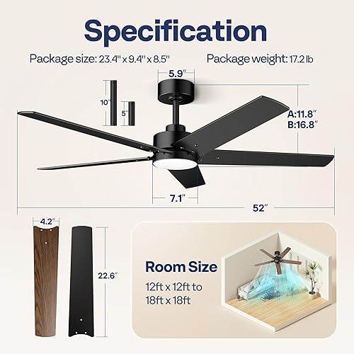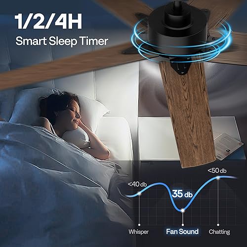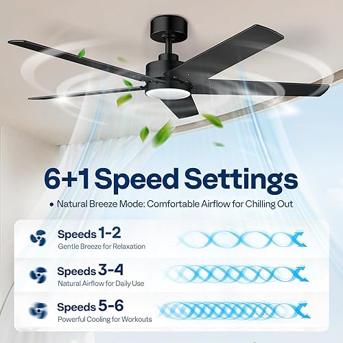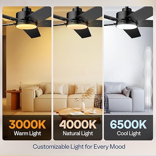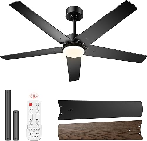 VIVOHOME Ventilateur de plafond avec lumières 52 pouces/132 cm profil bas avec lumière et télécommande pour chambre à coucher salon garage 6+1 vitesses 3CCT Dimmable Timer Quiet Reversible