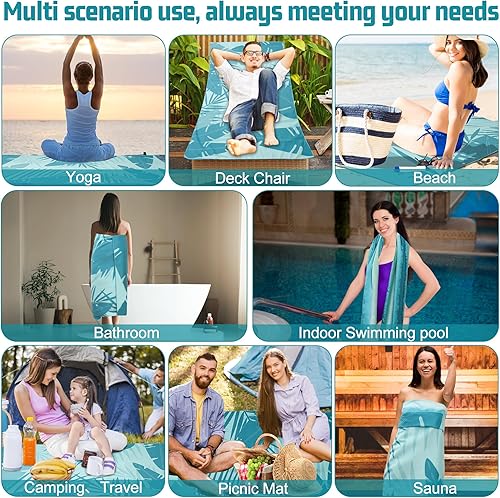 Serviette de Plage Microfibre XXL 90×180 cm avec sac, Serviette Microfibre pour la plage, les voyages, les piscines intérieures et les saunas, Drap de Plage, Serviette de Sauna pour Hommes et Femmes