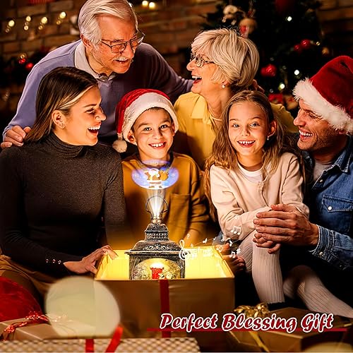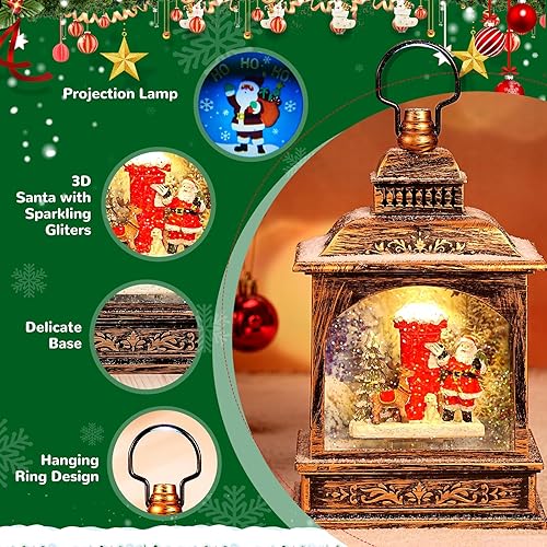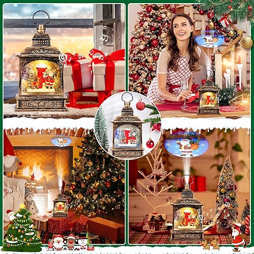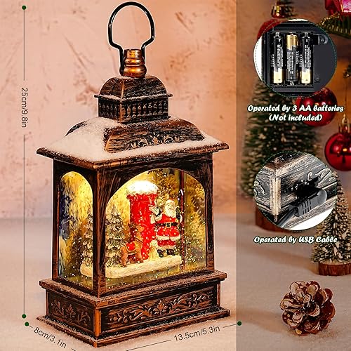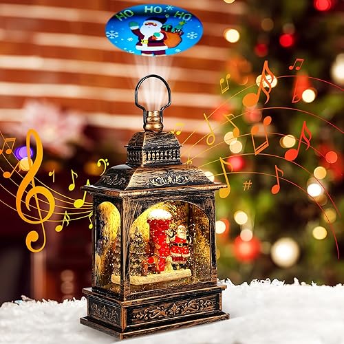 Wikay Lanterne Noel Lanterne Boule à Neige Musicale LED de Noël, Lampe de Noel Lumineux Père Noël et Flocon de Neige avec 8 Songs pour Décoration Noel Intérieure Prise USB ou Alimenté par Pile