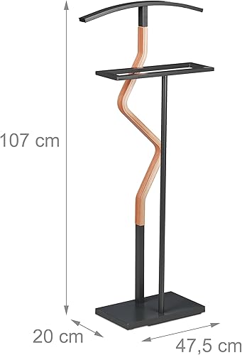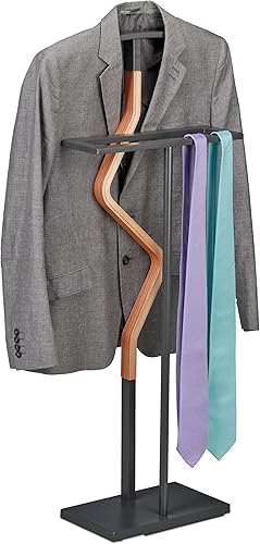 Relaxdays Valet de Chambre, MDF et Acier, Porte-vêtements, HxLxP : 107x47,5x20 cm, Chemises, Costume, Anthracite/Nature