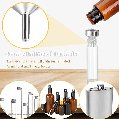 KINDOYO 3 Pièces Mini Entonnoirs en Métal - Petits Entonnoirs de Remplissage pour le Remplissage de Mini Bouteilles, Entonnoirs en Aluminium (diamètre 1,8cm) pour Huiles Essentielles, Parfums