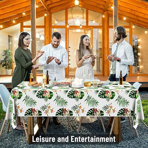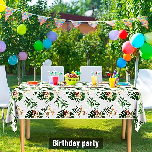 PLULON Nappe hawaïenne en Plastique Luau Fournitures fête Tropicale 137,2 x 274,3 cm Feuilles Palmier Nappe Enfants Anniversaire été Piscine Plage Mariage Pique-Nique Maison Salle à Manger décoration