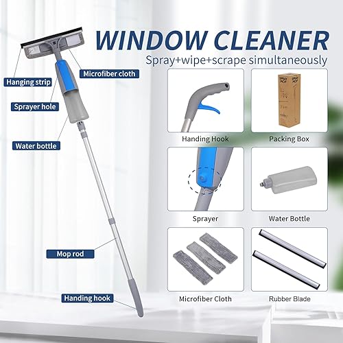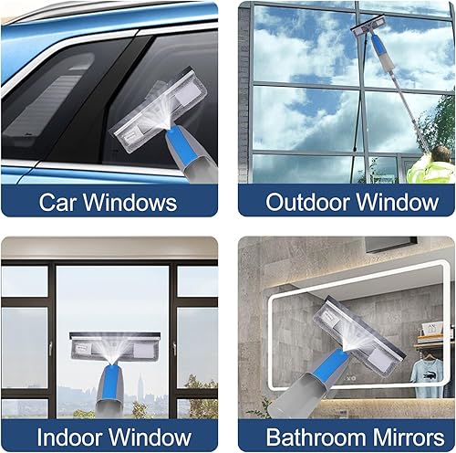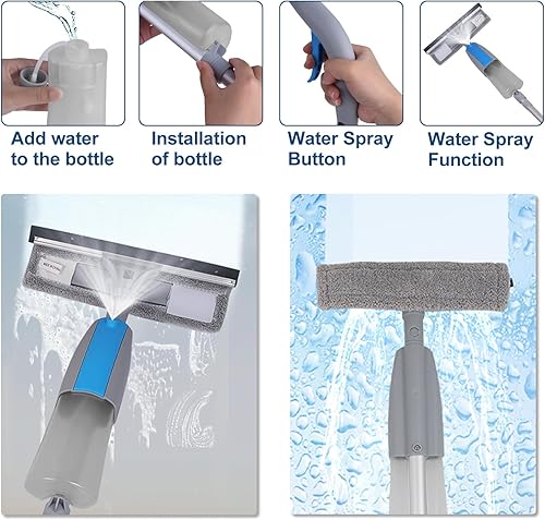 Nettoyeur de Raclette Vite 3 en 1 avec Manche Démontable, 190cm Outil de Nettoyage de Fenêtre avec 3 Chiffons Microfibres et Pulvérisateur Lave pour Fenêtre Baie Vitrée Pare-Brise