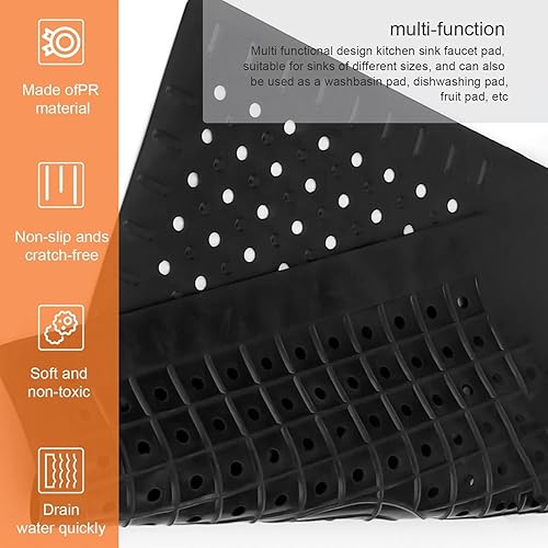 HJIAMA Tapis D'évier Forme Nid D'abeille, 12,4 x 10,4 Pouces Tapis Evier Cuisine, Pliable et Découpable Protege Evier Cuisine Noir, Sécurisé, Tapis Egouttoir pour Salle Bain, Cuisine, Table Manger, Év