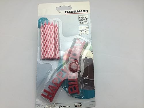 Fackelmann 52510 Lot de 8 bougies en spirale avec 1 support 'Happy Birthday', Bougies d'anniversaire, Bougies avec support gâteau, Multicolore, Cire, Plastique, 8x0,8cm