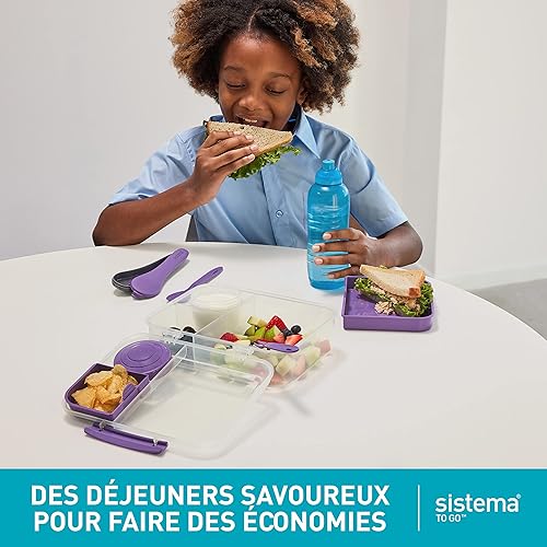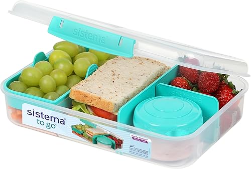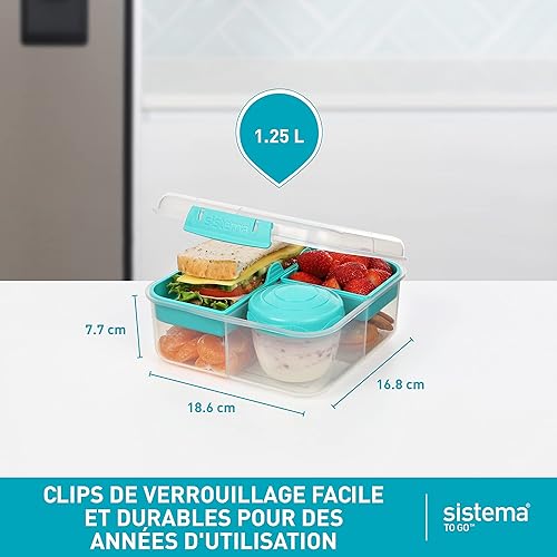 Sistema Bento Box TO GO - Boîte à lunch avec pot de yaourt/fruits - 1.25 L - Fabriqué en plastique recyclé - Teal Stone