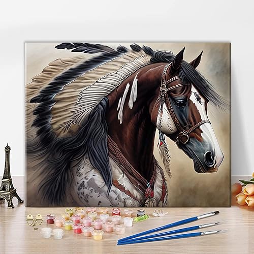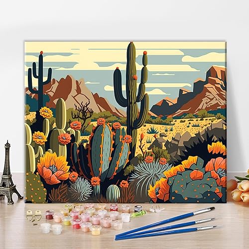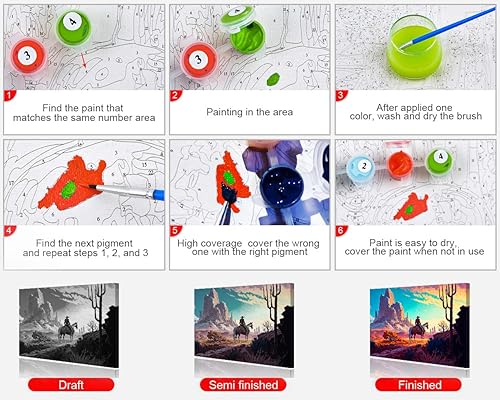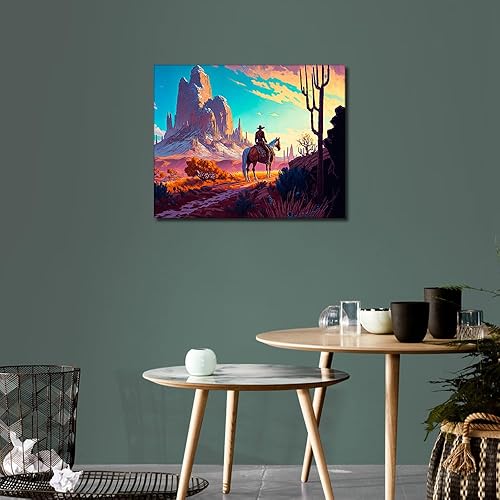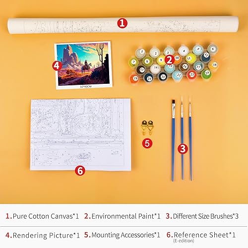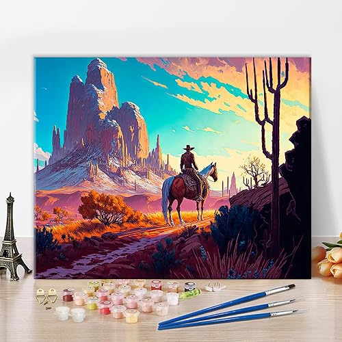 TISHIRON Cowboy Peinture par numéros pour adultes, peinture de paysage par numéros, peinture abstraite pour adultes, avec pinceau et pigment, peinture pour décoration murale, 40 x 50 cm, sans cadre