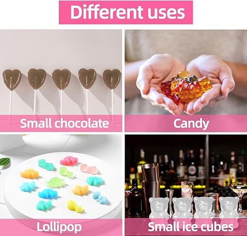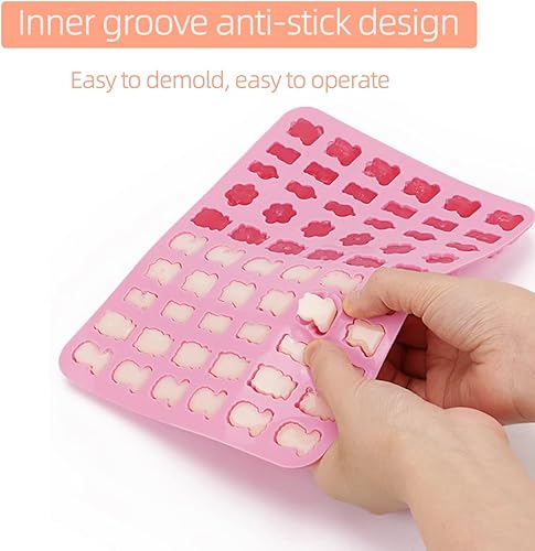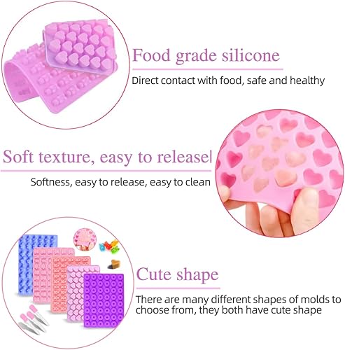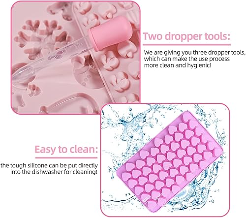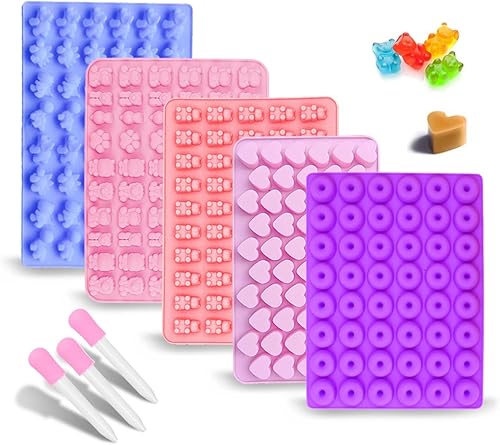 Lot de 5 Moules à Bonbons en Silicone, Moules à Bonbons Gommeux, Beignets, Cœurs, Animaux, Dinosaures, ours et 3 Compte - Gouttes pour Faire des Bonbons Gommeux, des Bonbons et du Chocolat