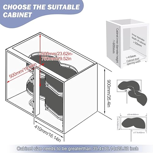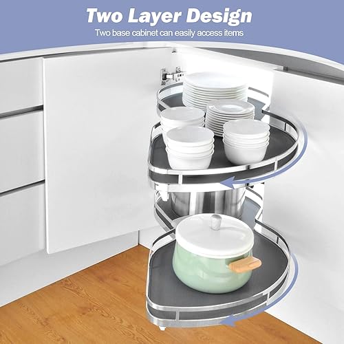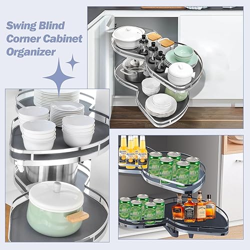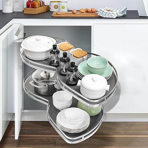 Rangement Pivotant Meuble Angle Cuisine,Carrousel d'angle de Cuisine, Organisateur Coulissant d'angle Aveugle, Rangement Coulissant pour Placard d'angle, Hauteur Réglable pour Armoire de 900 Mm