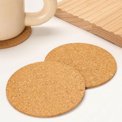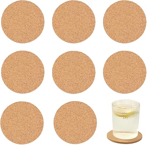 JIADEXIN 8 Pièces Dessous de Verre Liege Rond - 3 mm D’Épaisseur Dessous de Verre Réutilisables pour la Maison Bureau Bar et Restaurants Tasses Bouteilles Bols, 10 cm Diamètre