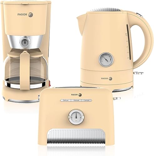 briebe Retro Ensemble Petit-déjeuner Cafetière Filtre 12 Tasses de Café, Bouilloire 1,7L sans fil, Grille-Pain avec Fente Large pour 2 Tranches, Design Vintage, Crème, Fagor