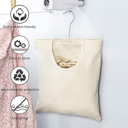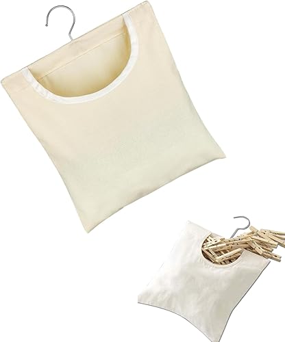 AOMiGT Sac à Pince à Linge, 32 * 27cm Sac Epingle a Linge, Clothes Peg Bag, Sac de Rangement à Suspendre pour Pinces à Linge, Panier en Toile Lavable avec Crochet, pour balcons de Salle de Bains