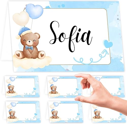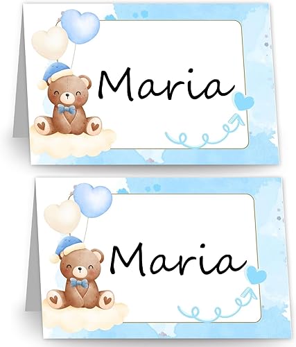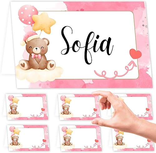Marque-place Baptême anniversaire pour fille, 50 Marques place table mignon ours original pour événements, marque place décorations table baptême cérémonie communion confirmation (Rose)