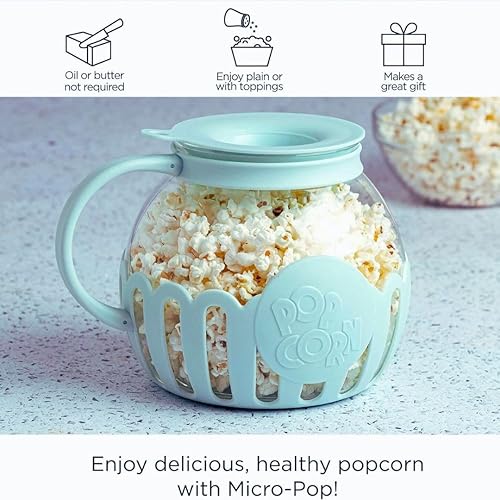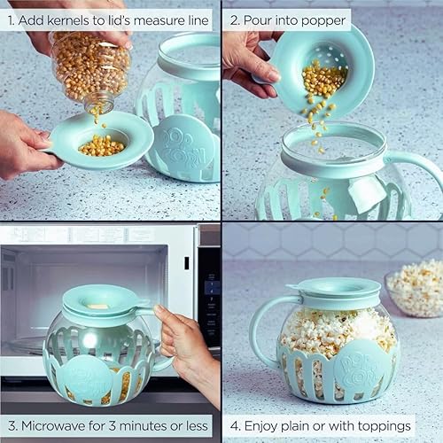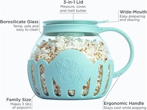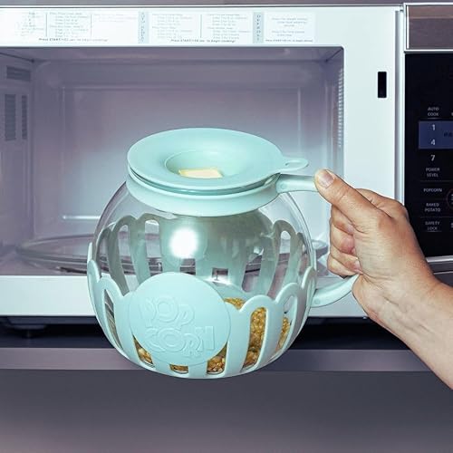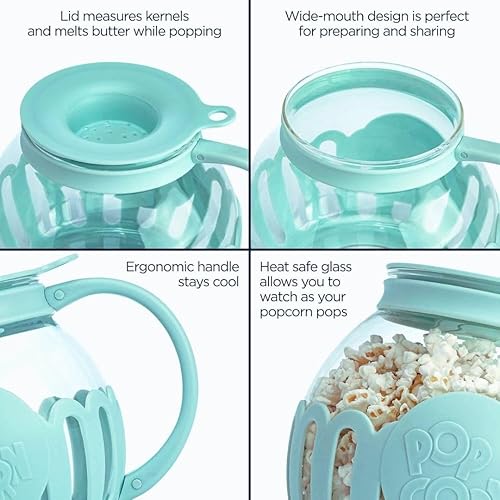 Micro-Pop Popper breveté pop-corn au micro-ondes avec verre sûr pour la température, couvercle 3 en 1 qui mesure les grains et fait fondre le beurre