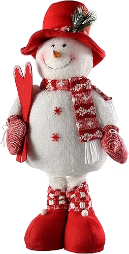 WeRChristmas Bonhomme de Neige avec Pieds Extensibles Décorations de Noël 41-60 cm Rouge/Blanc
