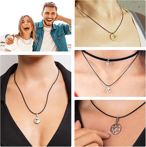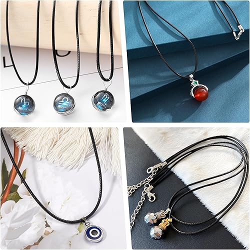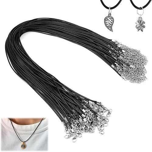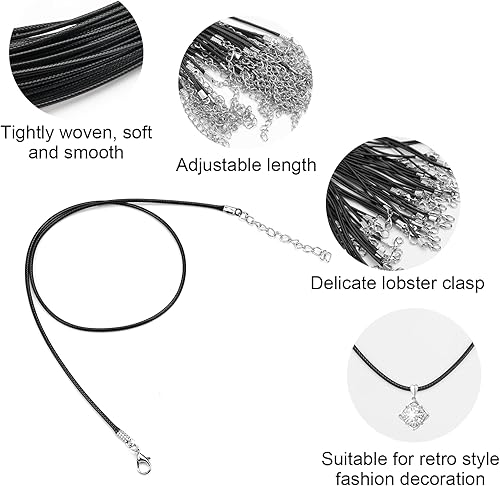 60 Pièces Cordon Collier pour Pendentif, 43cm Cordon Cuir pour Collier avec Fermoir, Cordon de Collier Ciré 1.5mm, Cordon de Pendentif Ciré Noir pour La Fabrication de Colliers, Bracelets et Bijoux