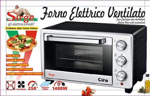 Sirge FORNO20L Mini Four électrique avec Double Verre Ventilè - 1400W 21L - Noir