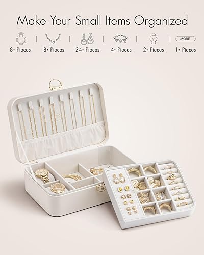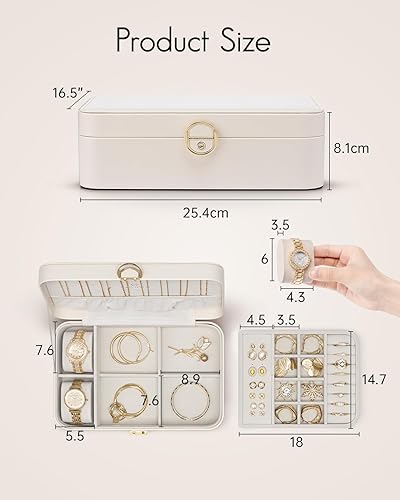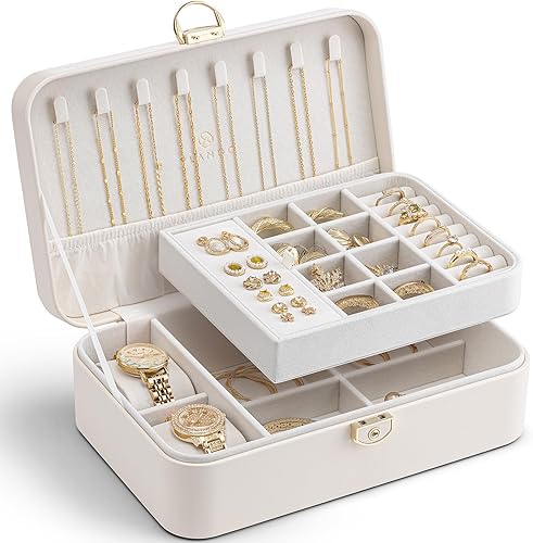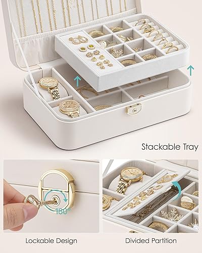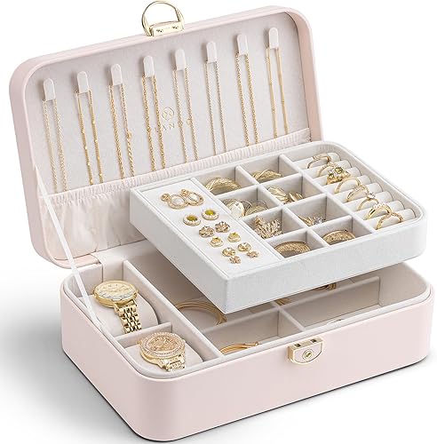 Vlando Boîte à bijoux pour filles et femmes - Double couche - Avec 2 coussins de montre - Boîte à bijoux verrouillable - Boîte à bijoux pour bagues, boucles d'oreilles, bracelets, colliers - Rose