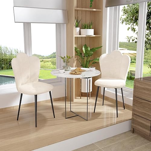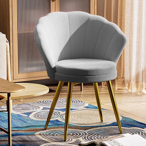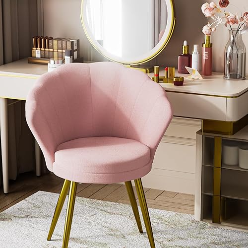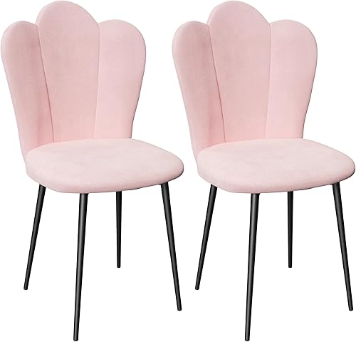 Wohenster Chaise de Salle à Manger 1 Chaise de Cuisine Assise rembourrée en Velours Pieds en métal Stable, Fauteuil Coquillage, Fauteuil Chambre Confortable Chaise Relax pour Chambre Salon, Rose Clair
