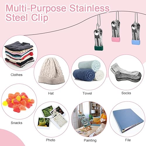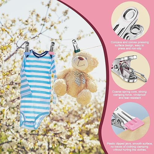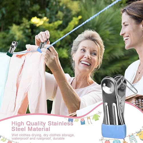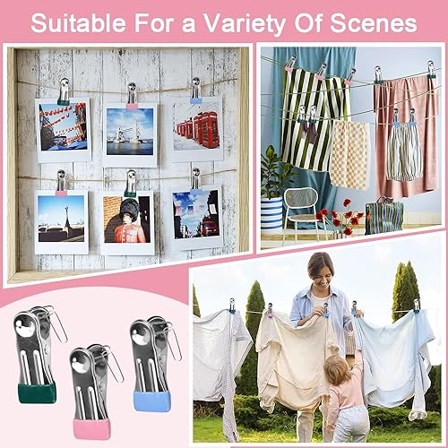 LPAMABA 30 Pcs Pince à Linge en Acier Inoxydable, Epingle a Linge Tricolores, Pince à Linge en Métal Multifonctionnel, épingle à Linge Extérieur, pour Alimentaire étanchéité, Vêtements, Chaussettes