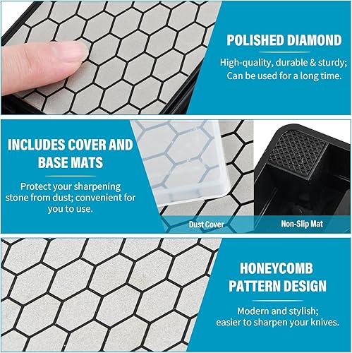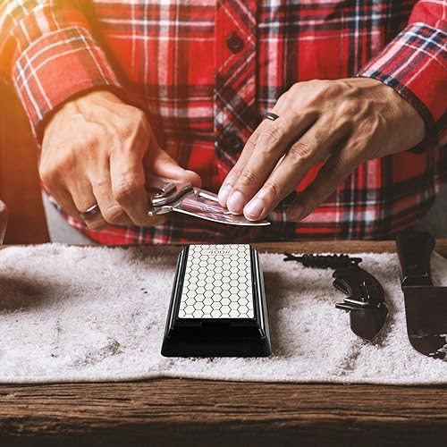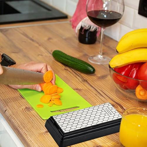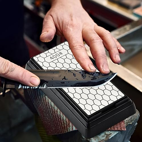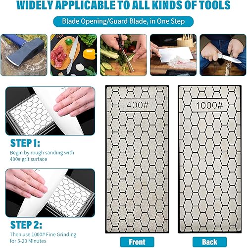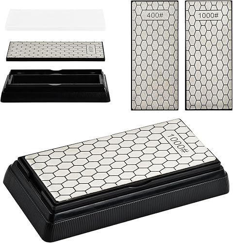 Volumoon Pierre à Aiguiser Diamantée Double Face (Grain 400# / 1000#) Aiguiseur Couteaux avec Base Antidérapante, Pierre a Aiguiser Diamant, pour Couteaux Ciseaux Outil d'Affûtage Cuisine