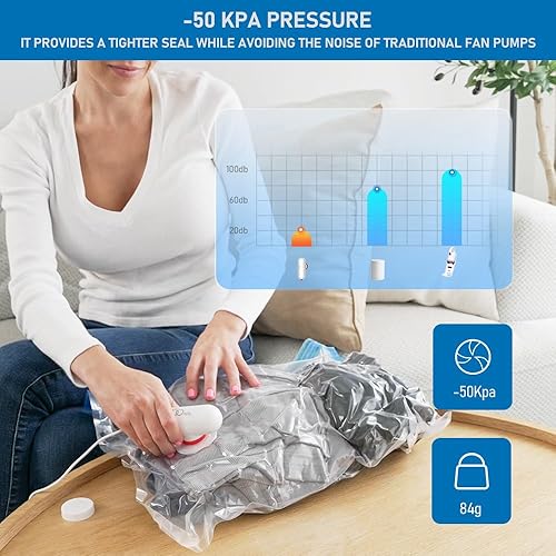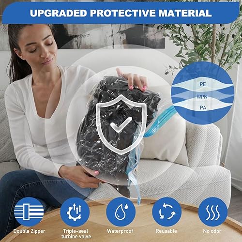 Vacbird Sac Sous Vide Vêtements Aspirateur avec Pompe USB, 6 Sac Rangement Sous Vide (2x 40x40cm, 2x 40x50cm, 2x 40x60cm), Réutilisables et Portables, Idéal pour Rangement Vêtements et Voyages