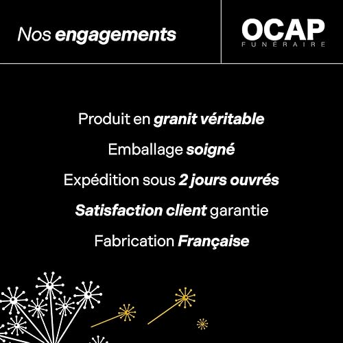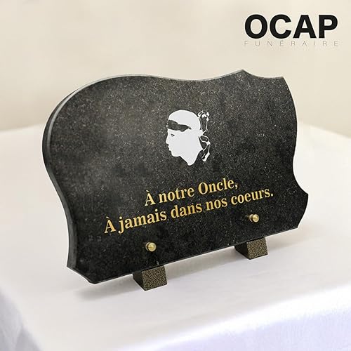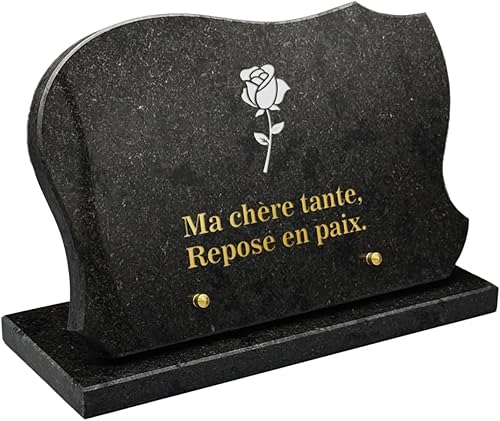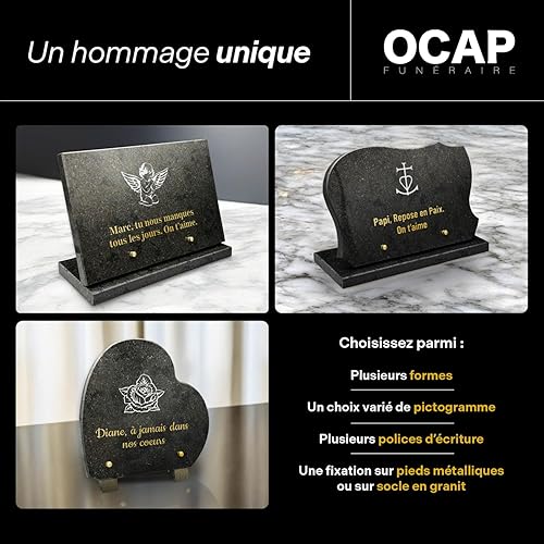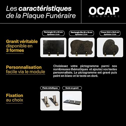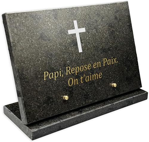 OCAP-FUNERAIRE.COM Plaque funéraire rectangulaire en Granit véritable d'épaisseur 2 cm, Personnalisable avec Pictogramme et Texte - 30 x 20 cm