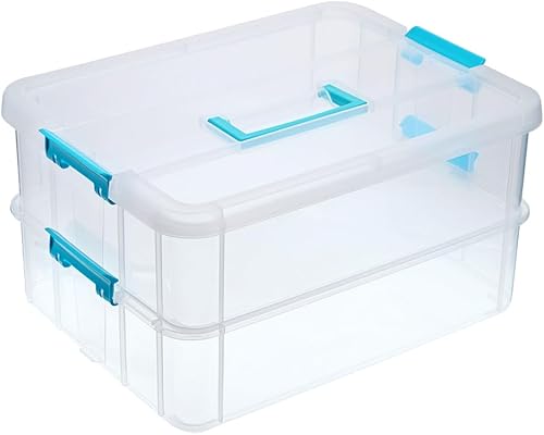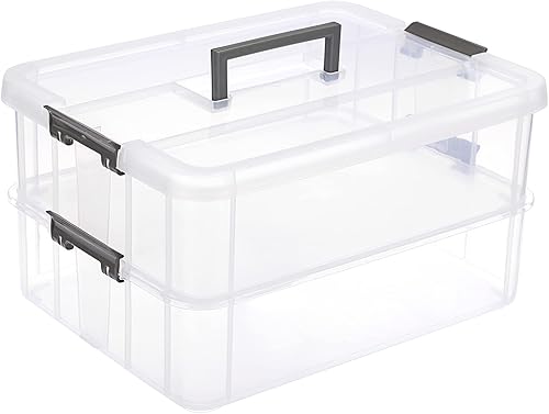 IGNPION Boîte de rangement empilable à 2 niveaux en plastique réglable avec poignée de transport - Boîtes transparentes pour jouets d'art et d'artisanat, accessoires de couture, noir