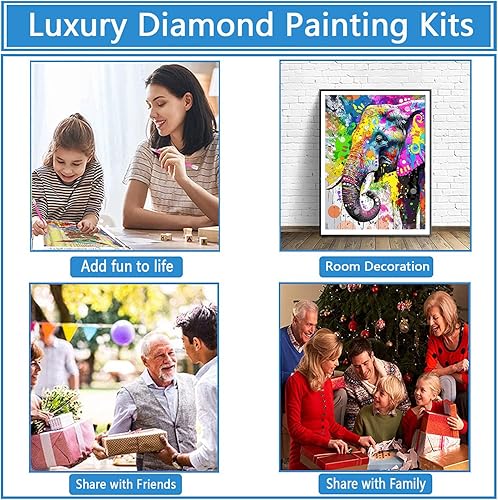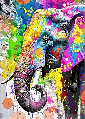 QINRUBB DIY 5D Éléphant Coloré Peinture Diamant Painting Kit, 5D Éléphant Aquarelle Art du Diamant Complet Kits, Diamond Art Kits Point de Croix Painting pour Adultes Débutants Maison Décor 30x40 cm