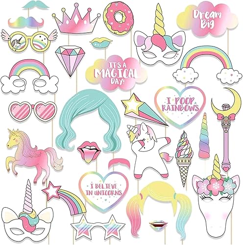 KASESSS 29 Pièces Licorne Accessoires Photobooth, Accessoires Photobooth Mariage, Deco Anniversaire, Fête Mariage Décoration Party, DIY Fête Photo Booth Props Accessoires, Décoration de Selfie Fête