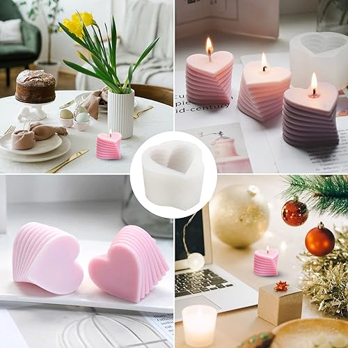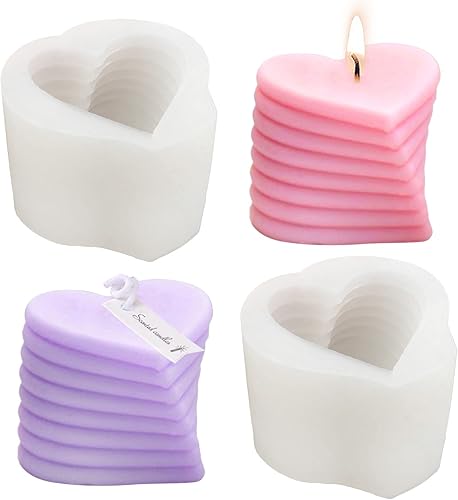 Tuxuzal Lot de 2 moules à bougies en forme de cœur en silicone - Forme de cœur - En résine époxy - En spirale - Pour bricolage, bougies, savons, fondants, gâteaux au chocolat